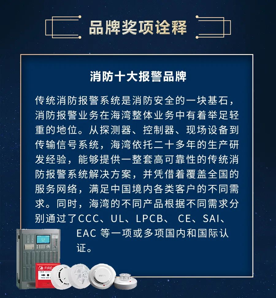 今年,海湾继续参与消防十大报警品牌、消防十大智能疏散品牌两个重磅奖项的评选。